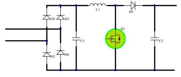 PFC(功率因數(shù)校正)拓?fù)涑R?jiàn)的工作模式有CCM電流連續(xù)型、DCM不連續(xù)型和CRM臨界型三種,PFC拓?fù)鋵?duì)MOS管的要求比較高,在保證系統(tǒng)效率和溫升的條件下,要盡可能的提升系統(tǒng)穩(wěn)定性。PFC拓?fù)涞目刂骗h(huán)路速度比較慢,為了平滑100Hz-120Hz的交流整流紋波,PFC拓?fù)涞姆磻?yīng)時(shí)間必須要達(dá)到數(shù)10ms。如果沒(méi)有對(duì)控制電路和IC進(jìn)行專門優(yōu)化,PFC拓?fù)湓趩?dòng)過(guò)程中往往會(huì)產(chǎn)生很大的沖擊電流,沖擊電流可達(dá)正常工作時(shí)的5-10倍,尤其是在反復(fù)的開關(guān)機(jī)過(guò)程中,更是對(duì)MOS管有著更加嚴(yán)苛的考驗(yàn)。PFC拓?fù)渲械腗OS管跨接在高壓與地之間,在進(jìn)行安規(guī)測(cè)試時(shí),MOS管的EAS能力也是評(píng)估其可靠性的重要參考。因此,PFC電路在選擇MOS管時(shí),需要著重考慮MOS管的開關(guān)特性(Ciss)、EAS能力、浪涌抵抗能力和靜電防護(hù)能力。